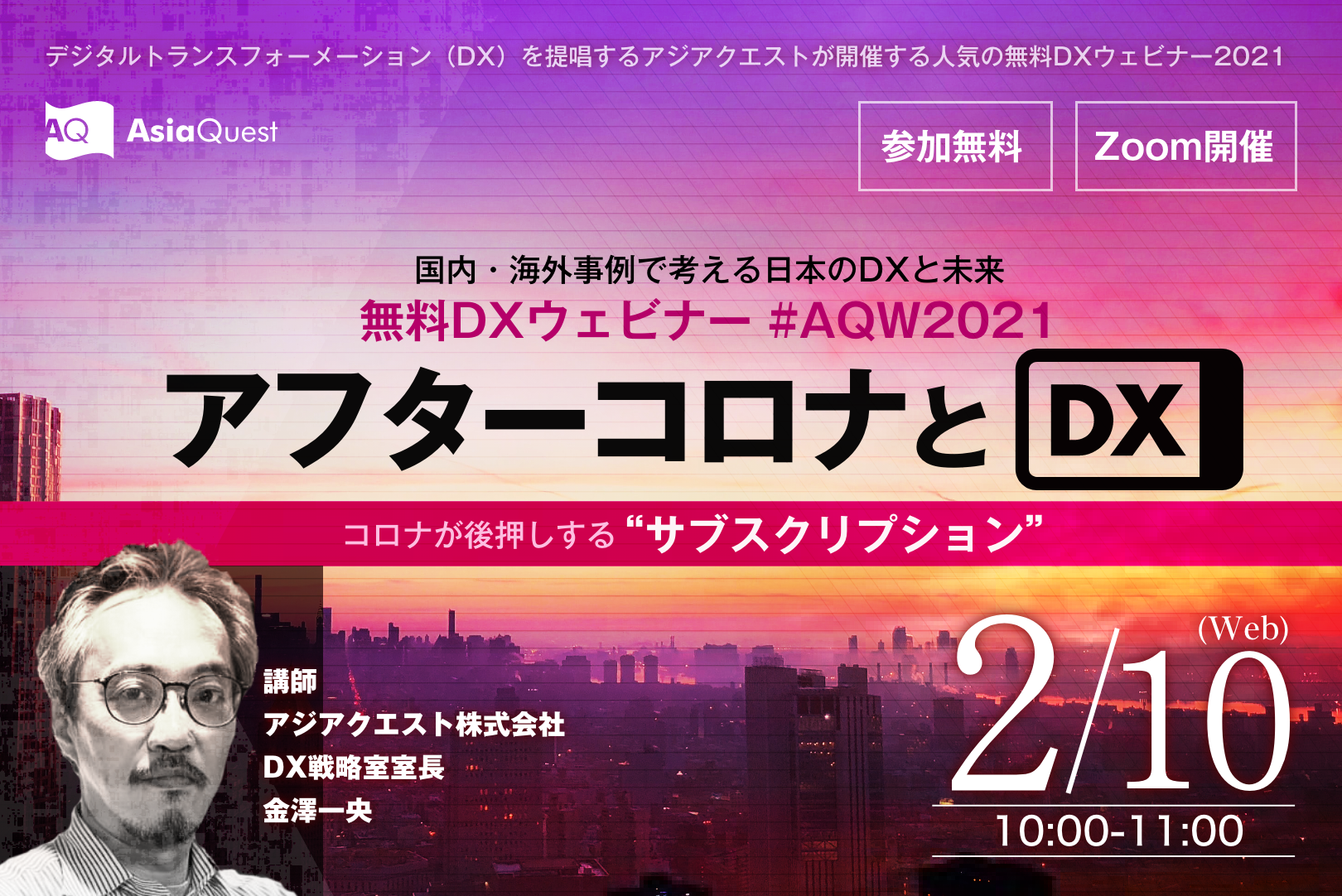 【参加費無料】ウェビナー『【AQW2021】 アフターコロナとDX コロナが後押しするサブスクリプション』を2/10に開催します