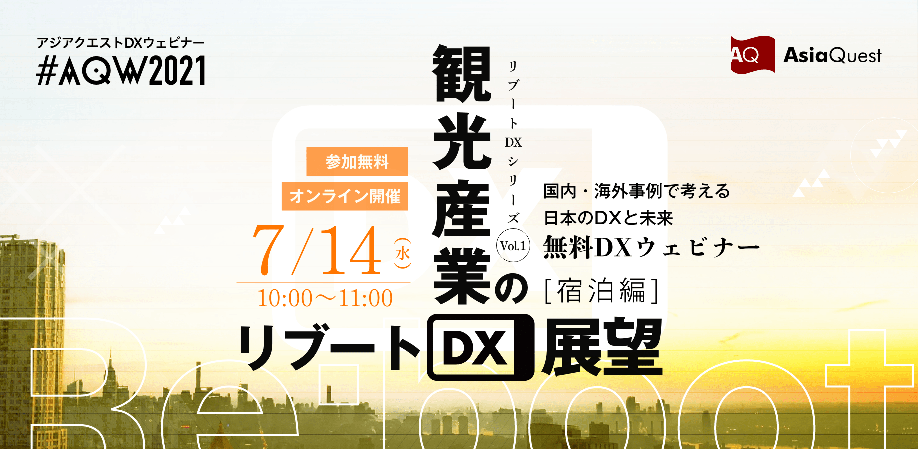 【参加費無料】ウェビナー『AQW2021 リブートDXシリーズ Vol.1:観光産業のリブートDX展望(宿泊編)』を7/14に開催します